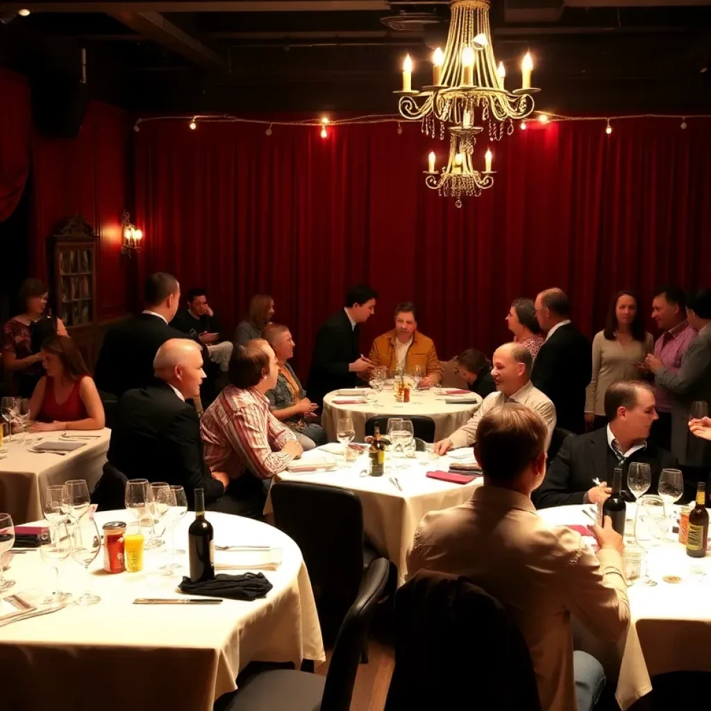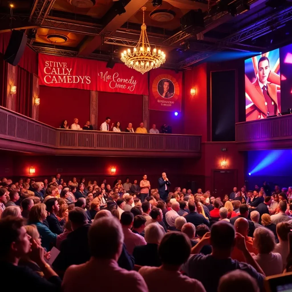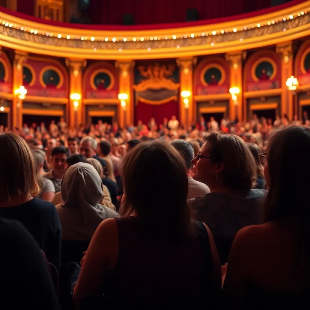 Lively crowd at a comedy show in a historic theater